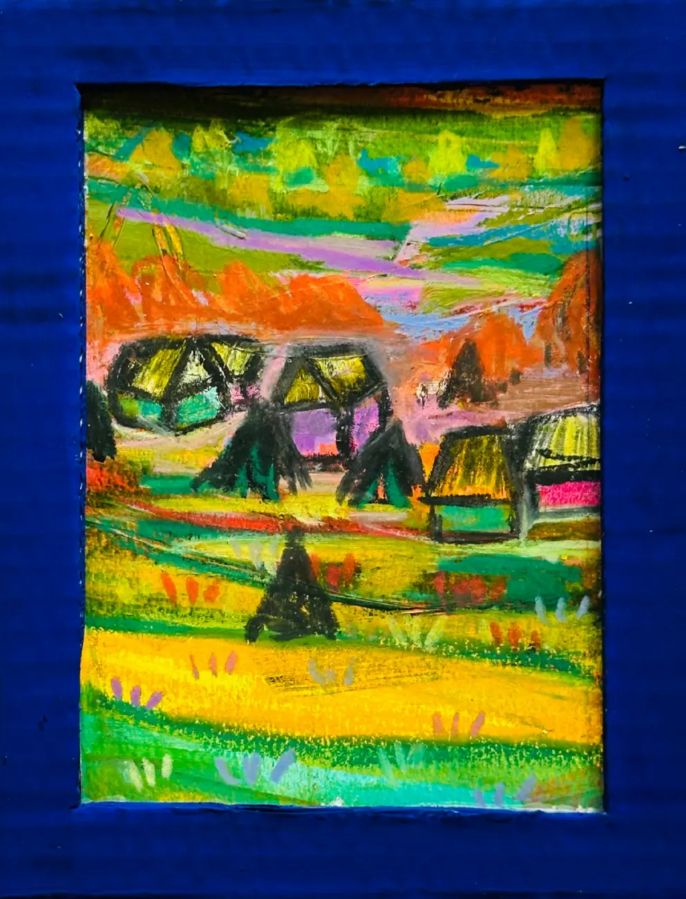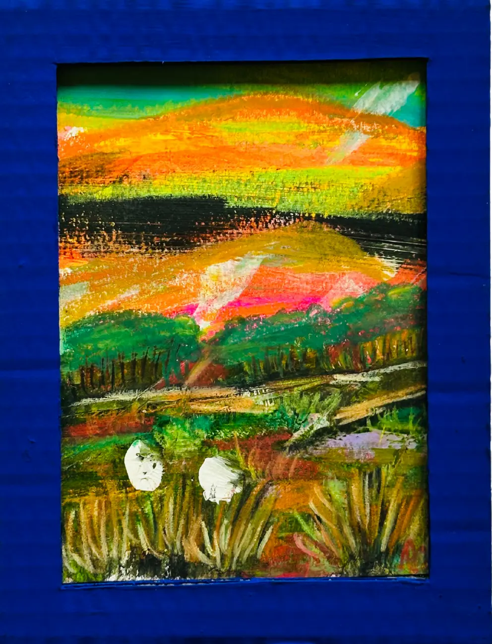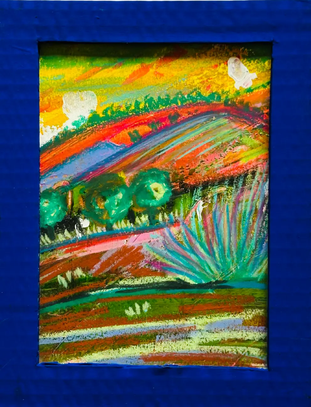 Une mini-série de douze œuvres originales, en petit format, où la couleur devient émotion et la matière, langage. Chaque tableau explore l’espace entre paysage réel et territoire intérieur à travers des techniques mixtes, des textures riches et des couleurs franches et vibrantes qui captent le regard et éveillent la sensibilité. Certaines compositions laissent apparaître des silhouettes de maisons ou des traces de nature recomposée, créant un dialogue subtil entre abstraction et mémoire du réel.