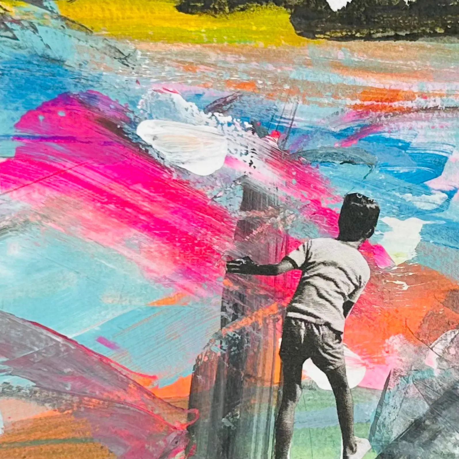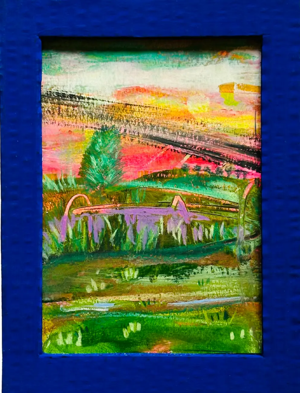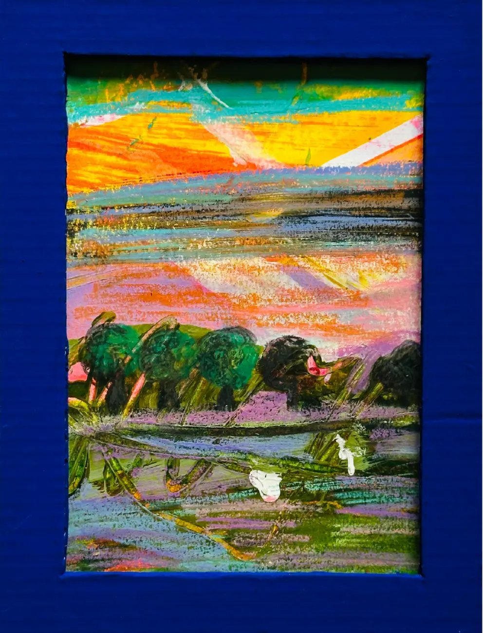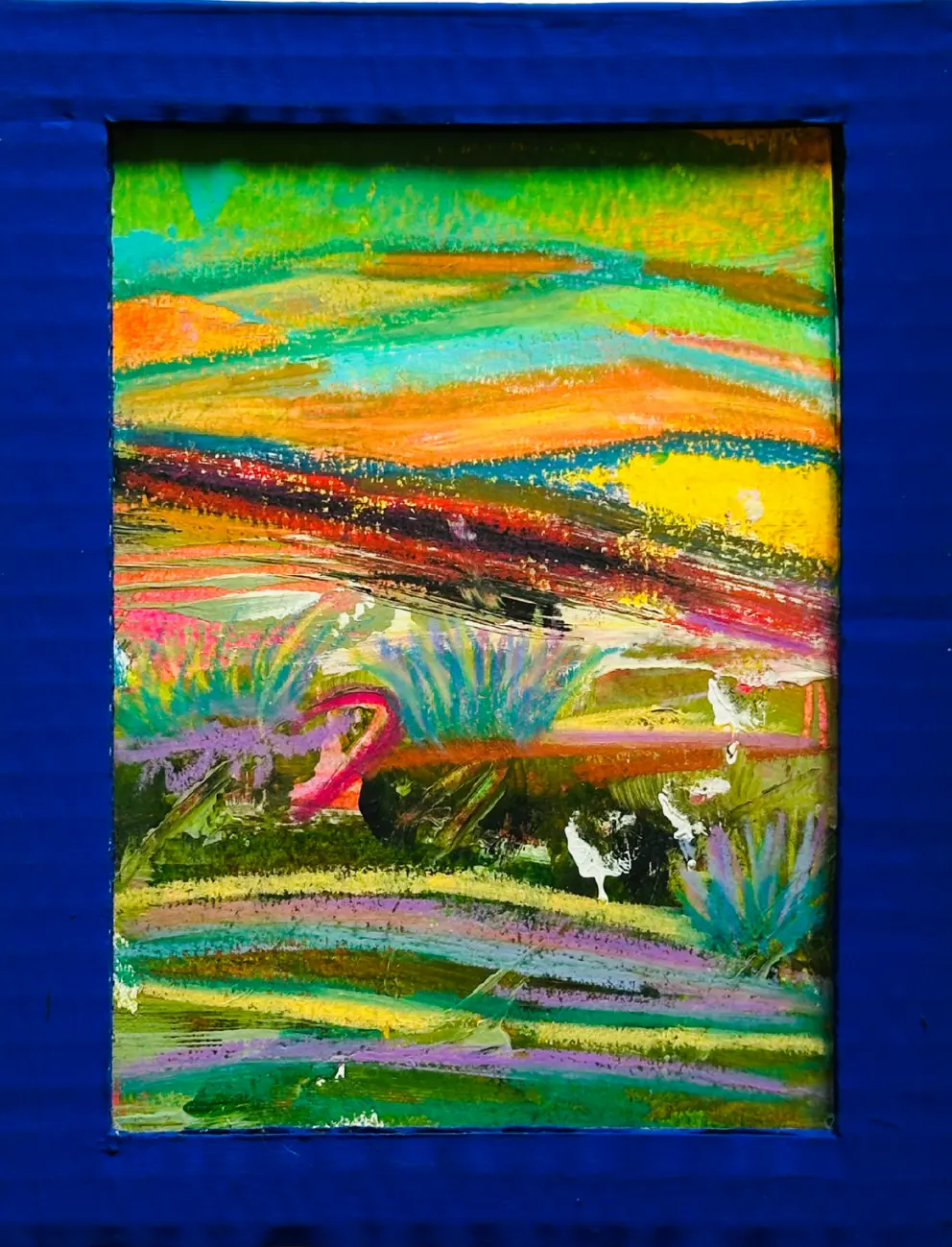 Une mini-série de douze œuvres originales, en petit format, où la couleur devient émotion et la matière, langage. Chaque tableau explore l’espace entre paysage réel et territoire intérieur à travers des techniques mixtes, des textures riches et des couleurs franches et vibrantes qui captent le regard et éveillent la sensibilité. Certaines compositions laissent apparaître des silhouettes de maisons ou des traces de nature recomposée, créant un dialogue subtil entre abstraction et mémoire du réel.