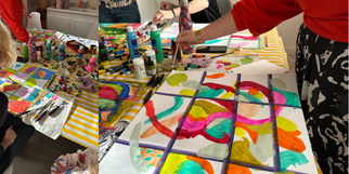 Après avoir délimité nos fragments, nous sommes passées à la peinture. Nos couleurs représentaient nos émotions, le pinceau notre langage. Pendant plus d’une heure, chacune a exploré à son rythme, jouant avec les matières et les outils, laissant des traces uniques de cette expérience. Certaines ont peint pour la première fois et ont été surprises de leur plaisir et de leur créativité.
